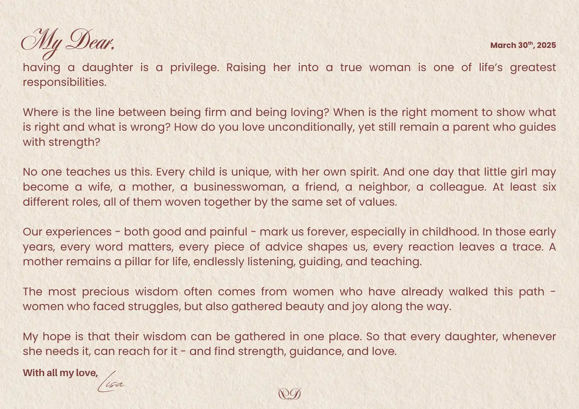Dear Daughter helps you build a life with balance and beauty, where ambition and softness can coexist.